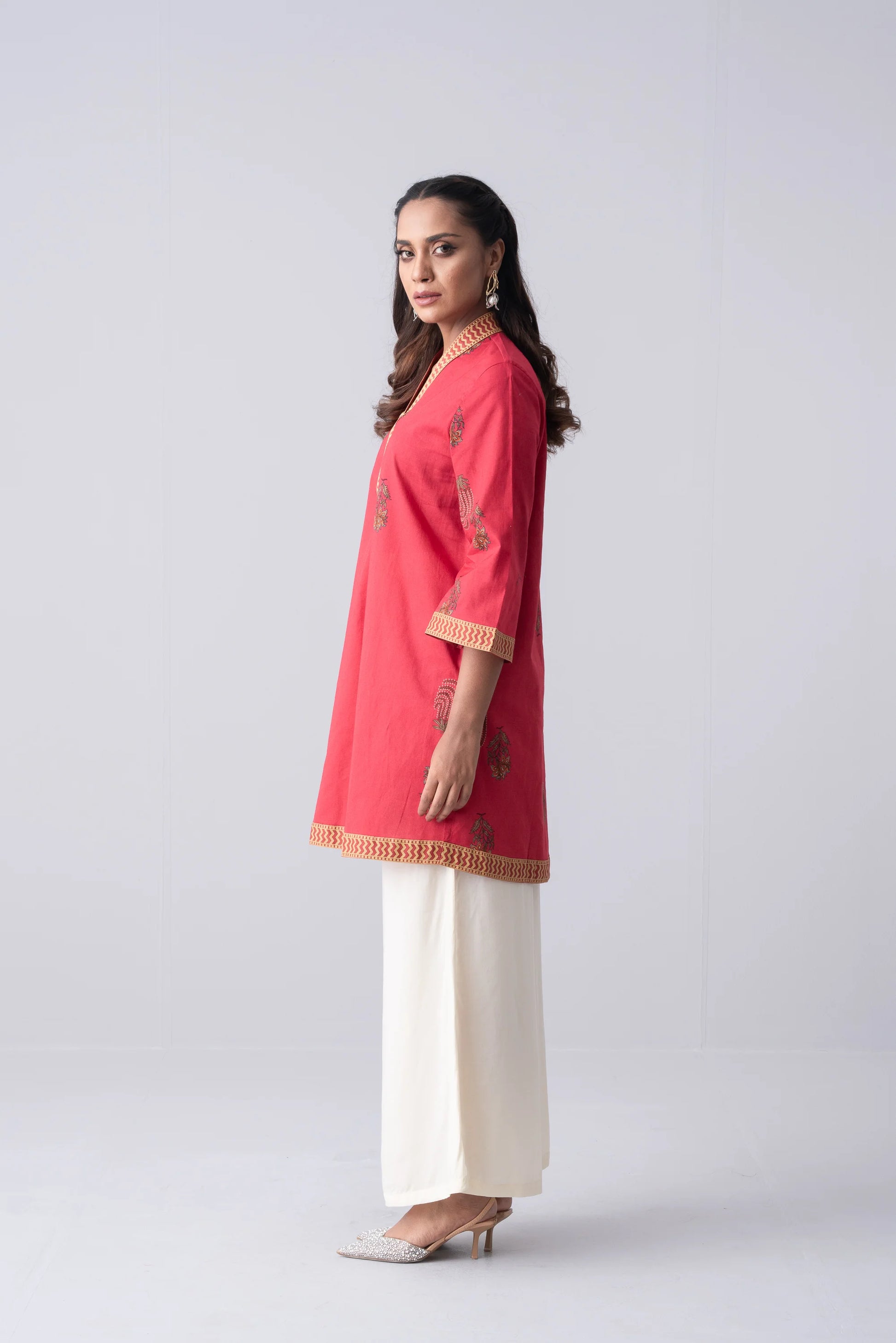 Short-Length Embroidered Relaxed Fit Ethnic Kurti
