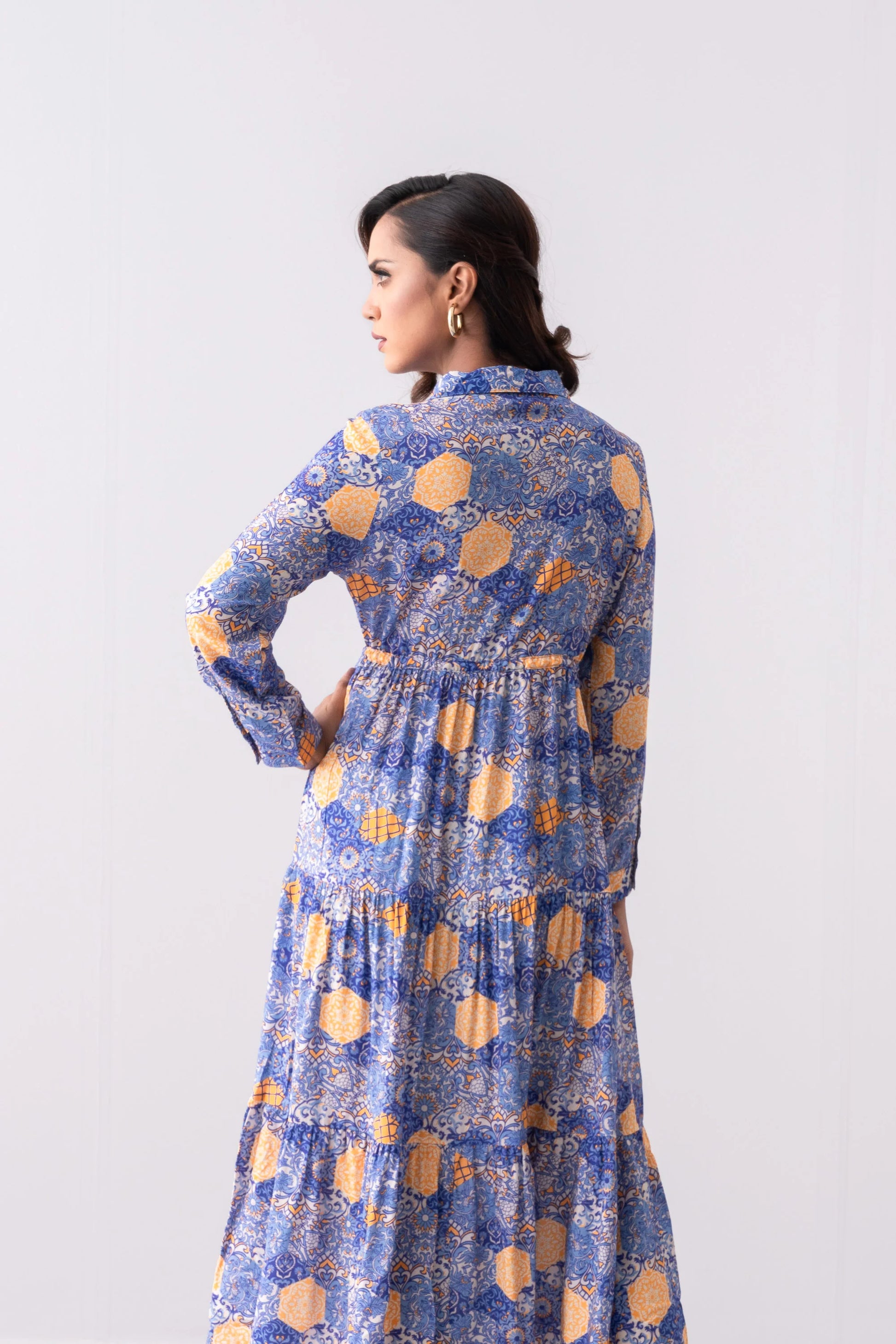 The Tired Dress combines elegance with comfort, featuring a regular fit and long length for a graceful silhouette. Its floral digital print adds a vibrant and modern touch, making it perfect for any occasion. Designed with full sleeves with cuffs and a shirt collar, this dress exudes a refined yet effortless appeal. The snap button placket ensures ease of wear, while the functional draw cord at the waist allows for an adjustable fit, enhancing the overall shape. Crafted from soft viscose fabric, it offers a lightweight, breathable feel, ensuring all-day comfort with a beautiful drape. A versatile and stylish addition to any wardrobe.