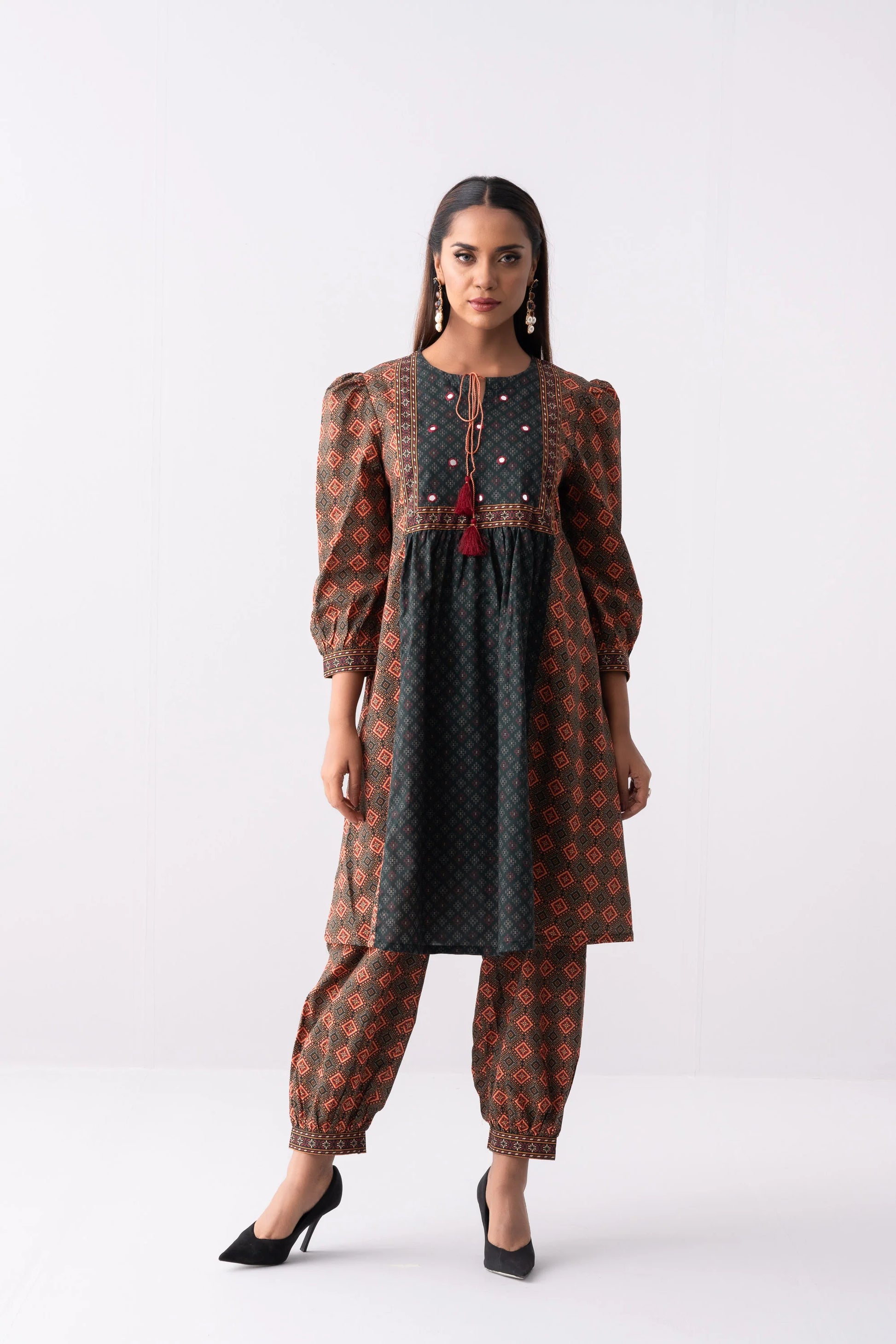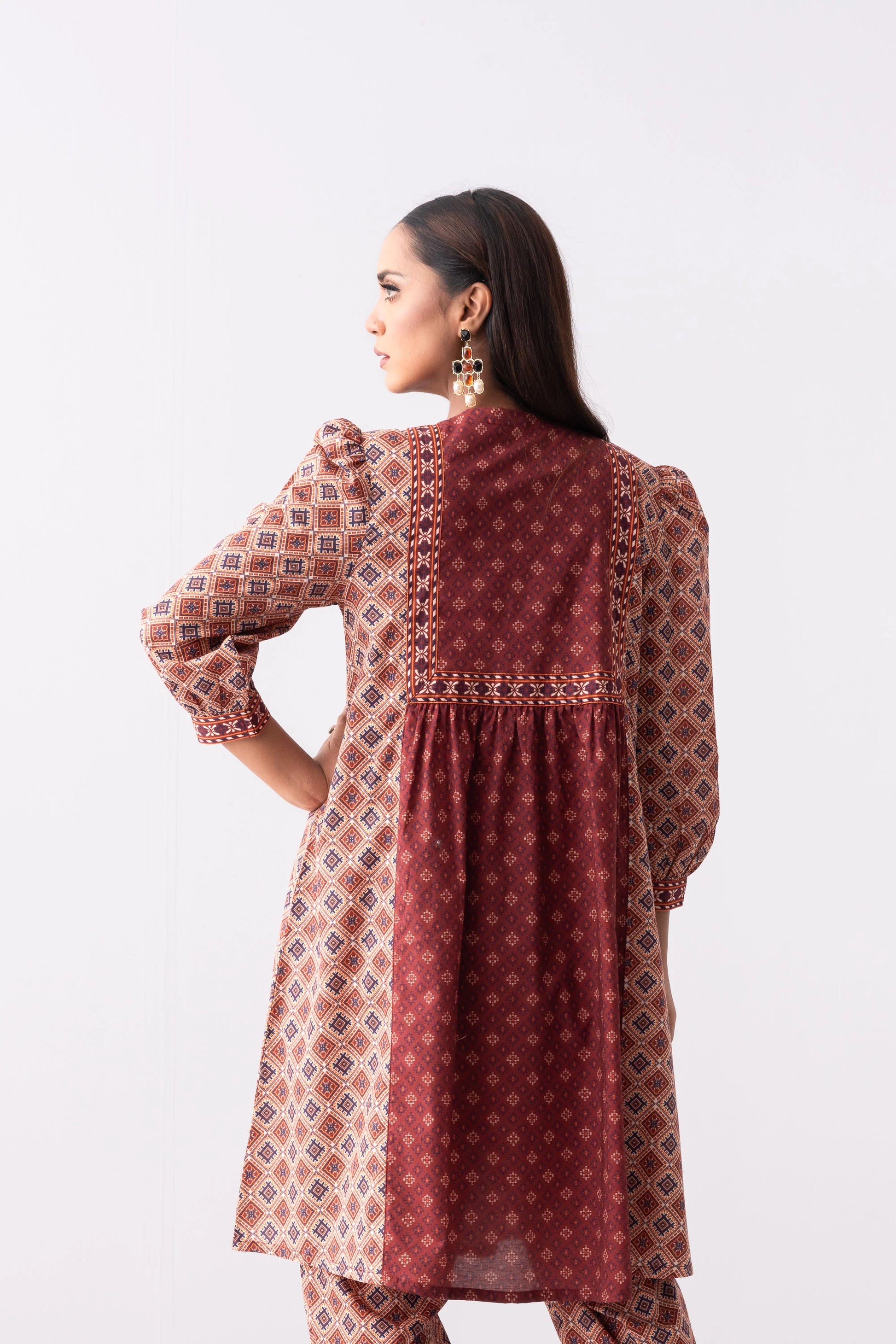 Mid-Length Smart Fit Two-Piece Digital Printed Ethnic Set