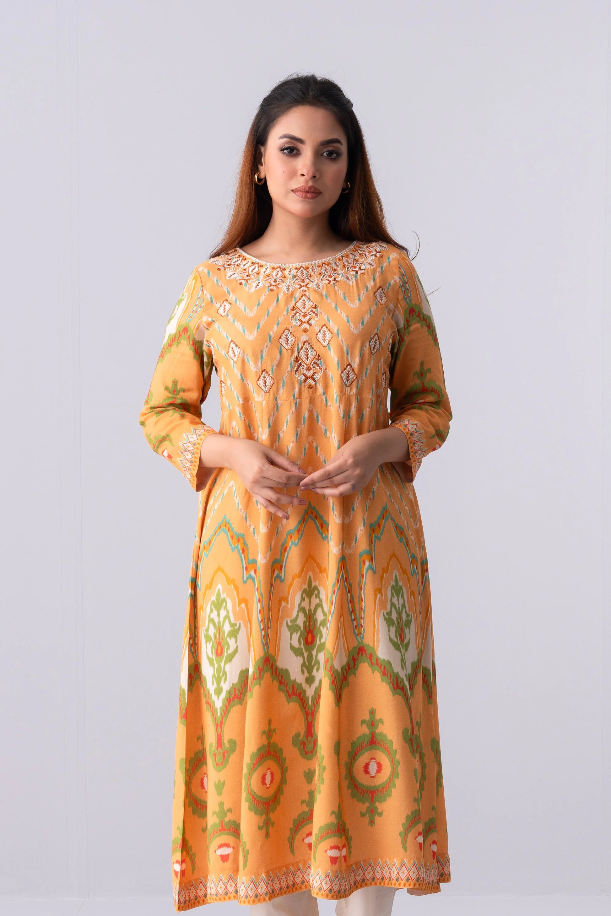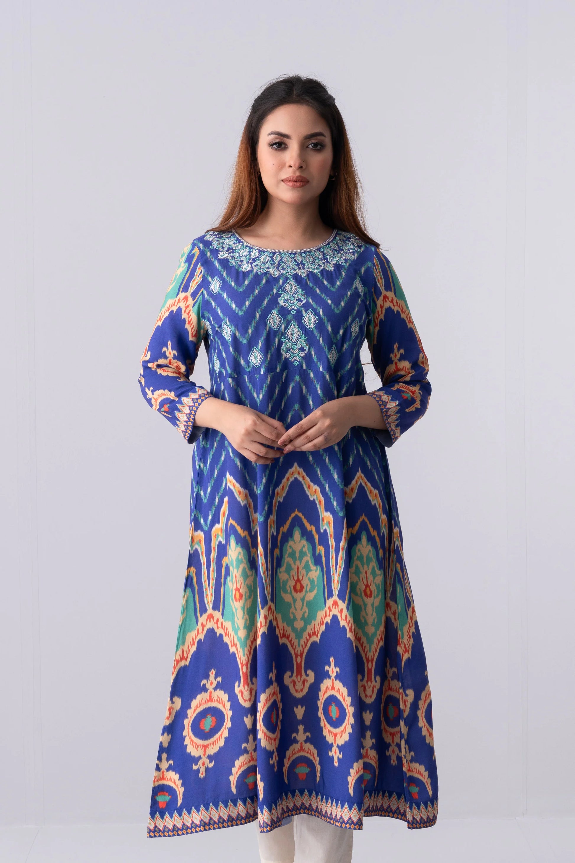 Long-Length Relaxed Fit Ethnic Kurta - One Piece