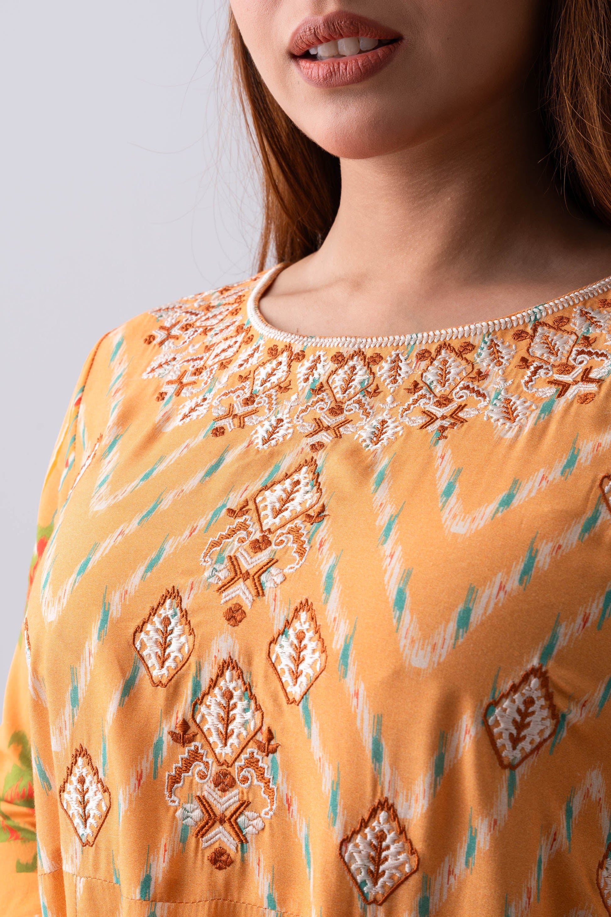 - Embroidered yoke.
