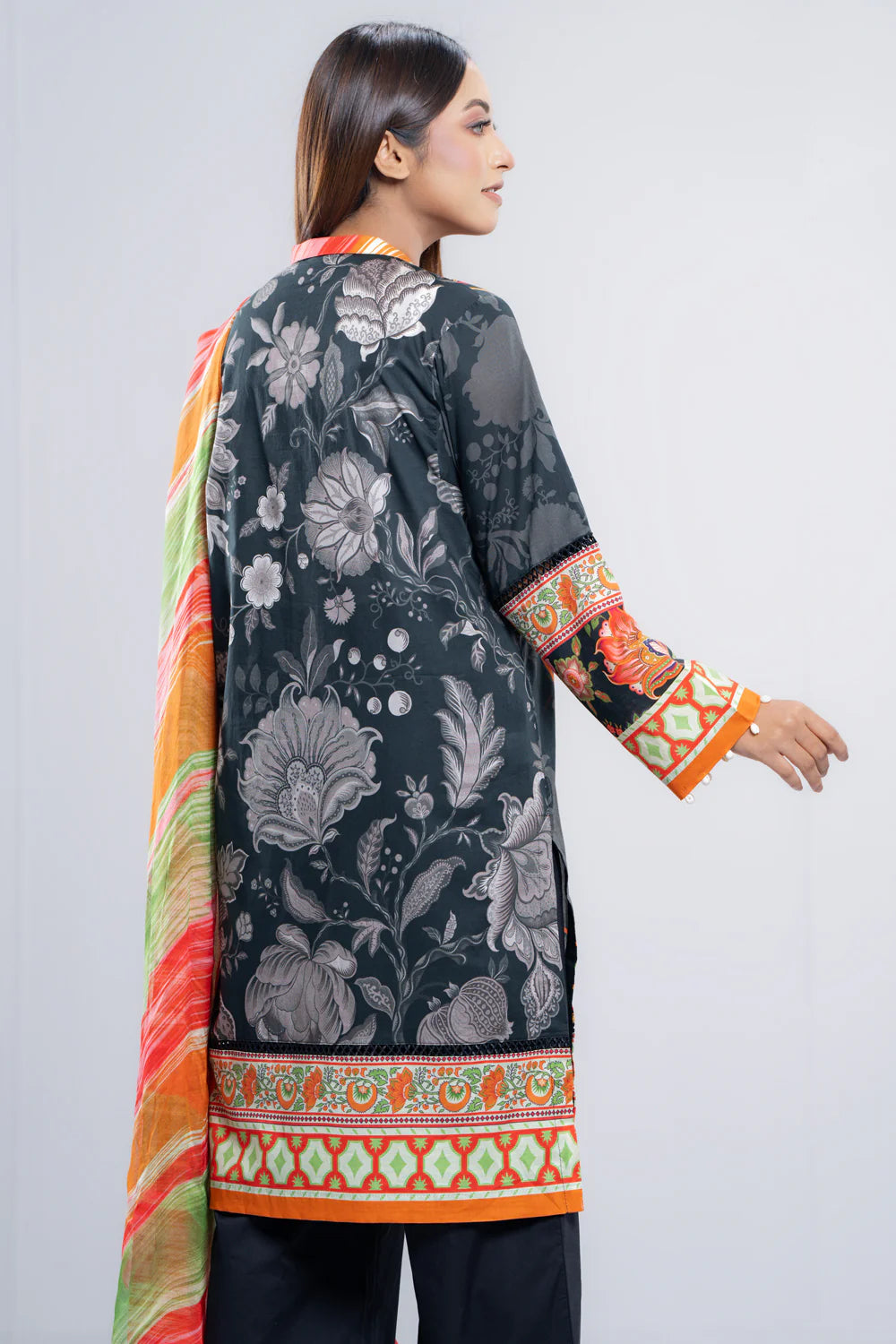 - Digitally printed 3-piece lawn salwar kameez suit