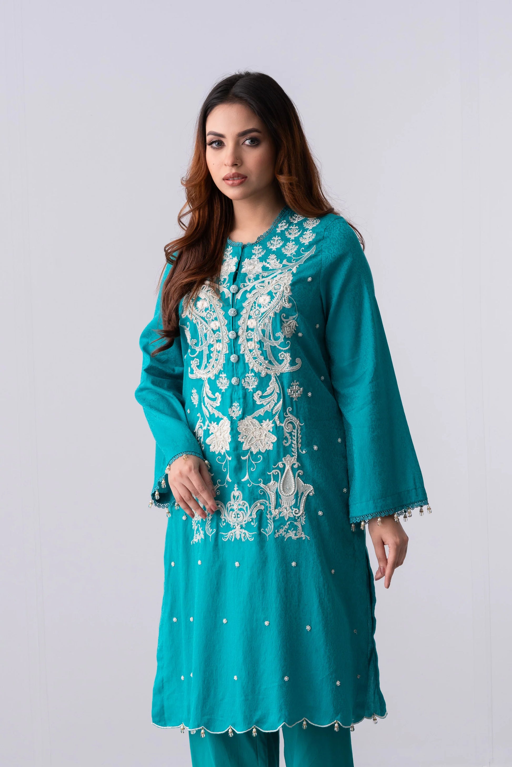 Elevate your elegance with our stunning ready-to-wear 3 Piece Lawn Salwar Kameez Suit, featuring exquisite full front beads embroidery. Accentuated with decorative pearl buttons, intricate lace, and beaded tassels for an extra touch of sophistication, the look is further enhanced by delicate embroidered fabric cutwork at the bottom hem. The ensemble is completed with a vibrant digital printed silk dupatta, paired with a solid dyed relaxed pant featuring pintucks and lace detailing—offering the perfect blend of grace and charm, ideal for special occasions or effortlessly elevating your everyday style.