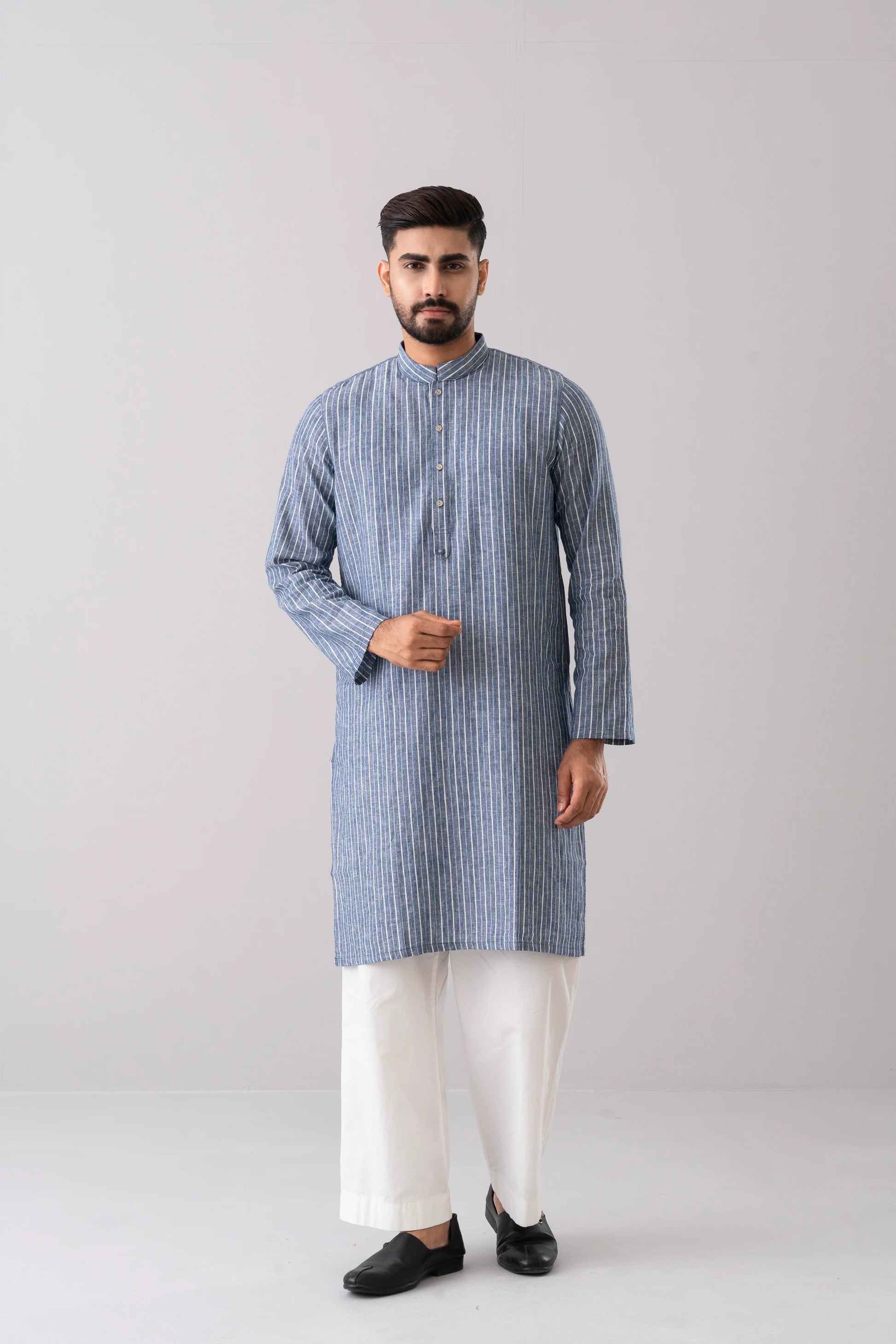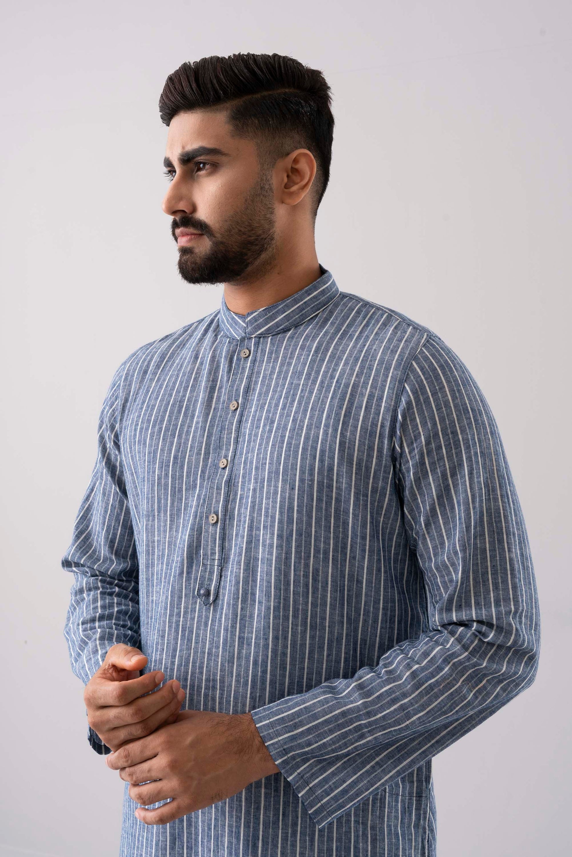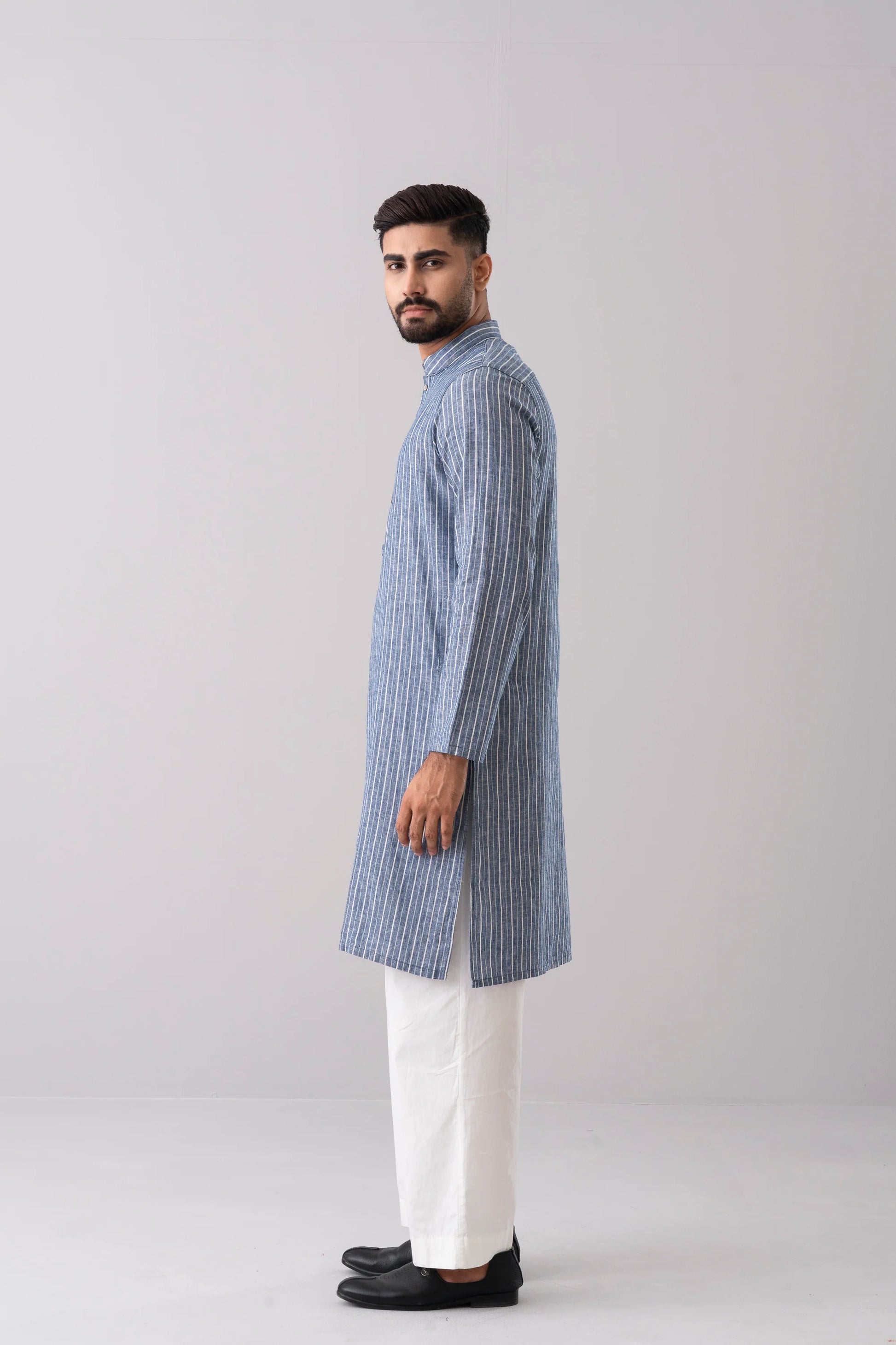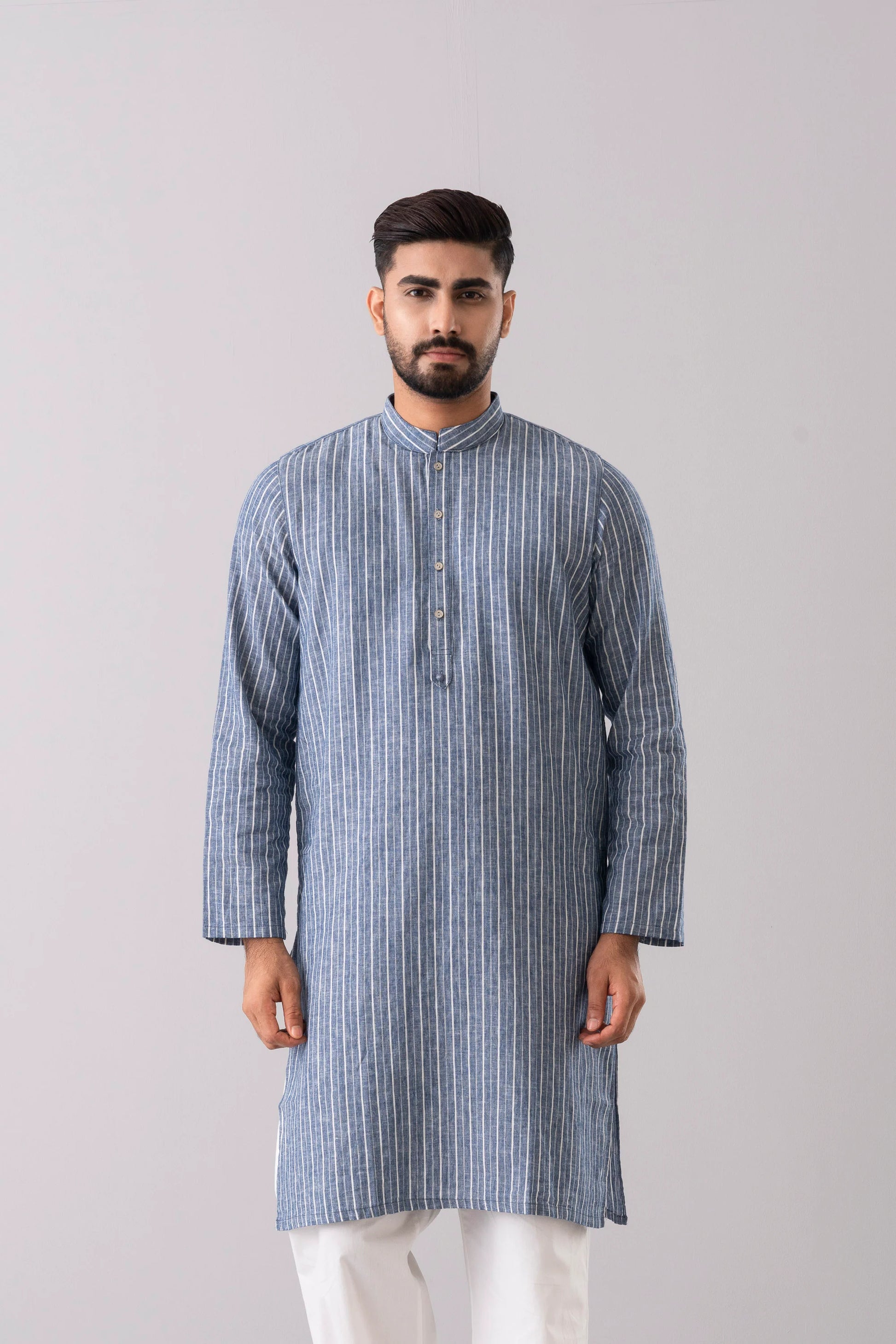A regular-fit Panjabi crafted from 100% cotton fabric, featuring an elegant