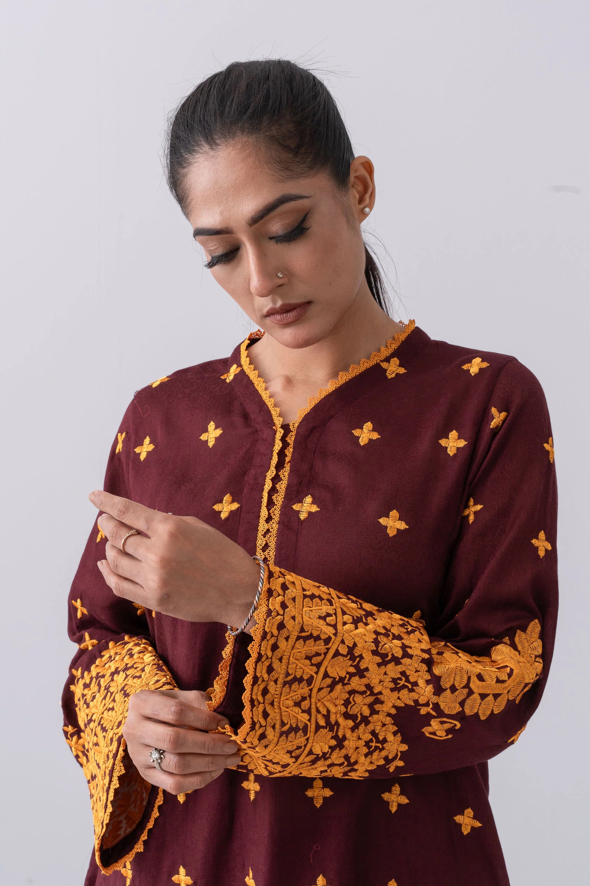 Relaxed Fit Embroidered Jacquard Cotton Lawn Kurta