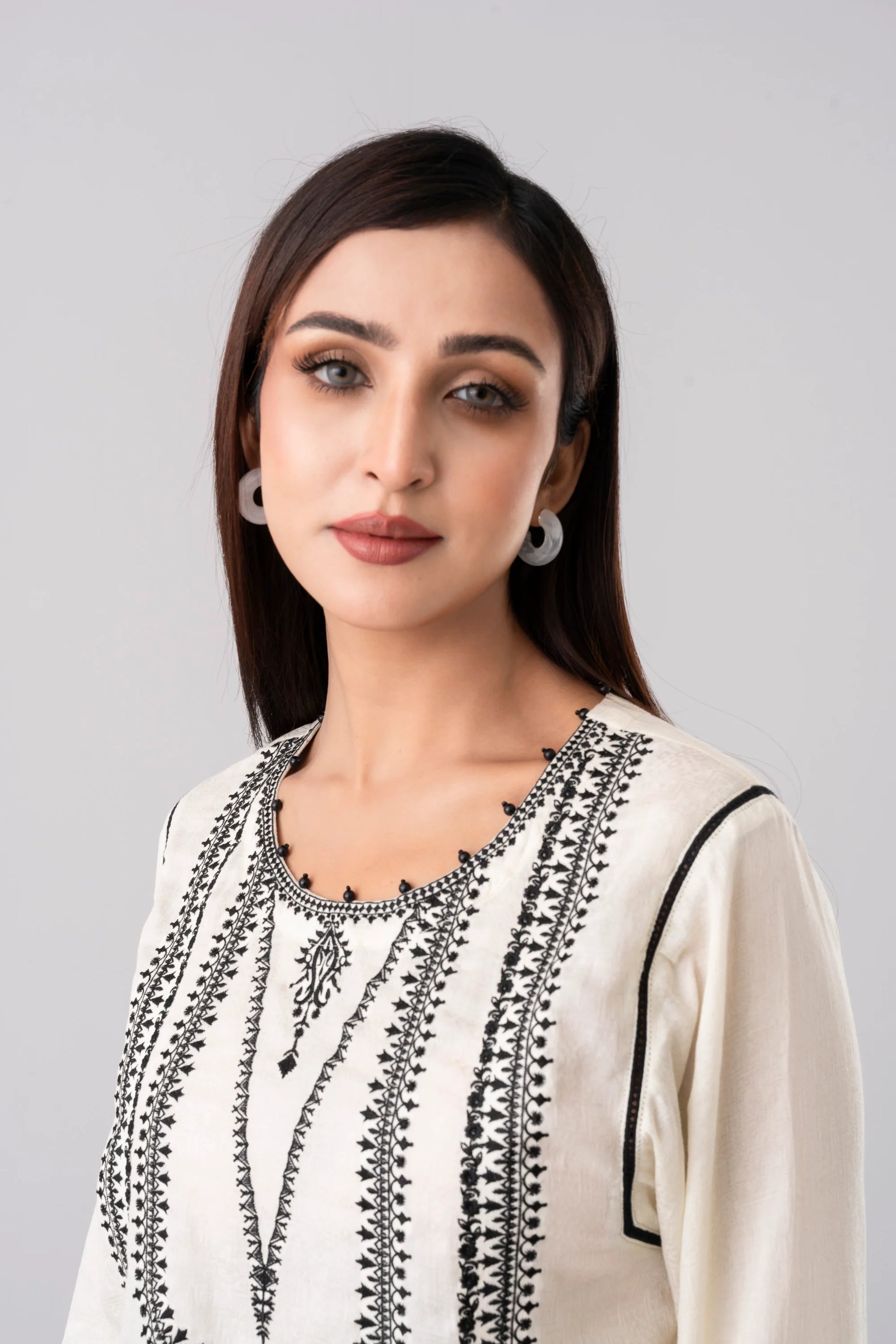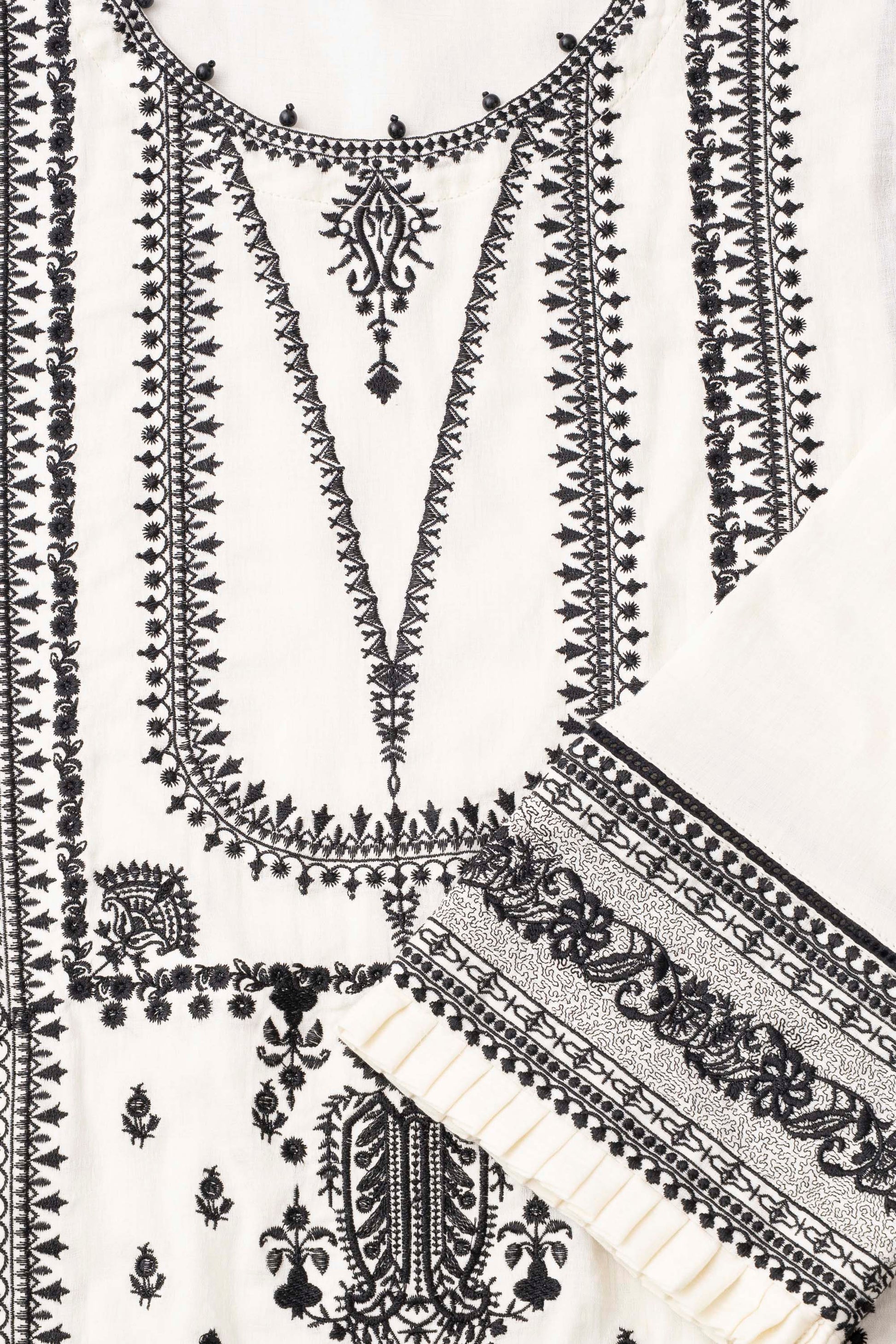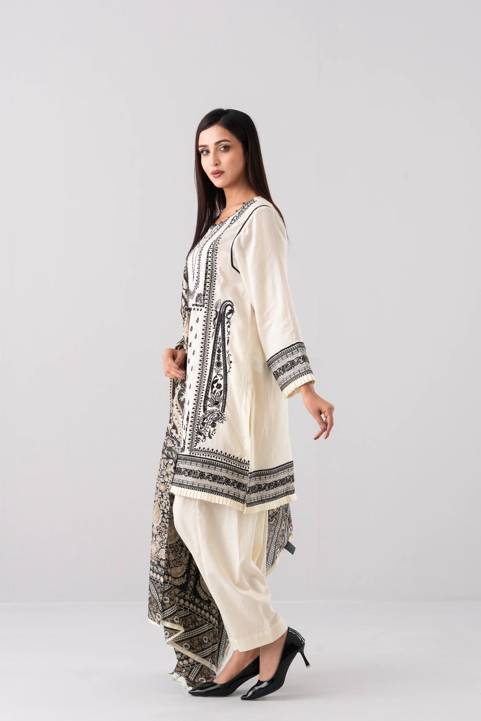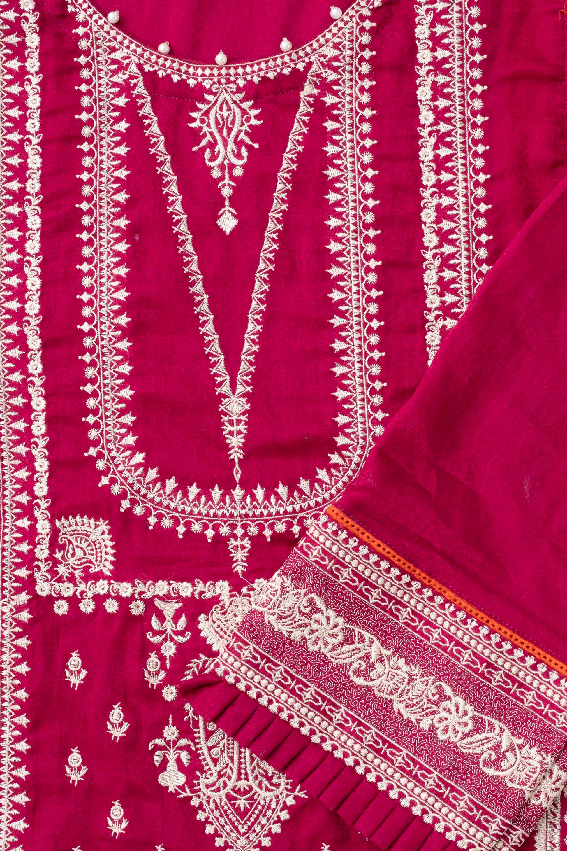 Relaxed Fit Embroidered Three-Piece Lawn with Silk Dupatta
