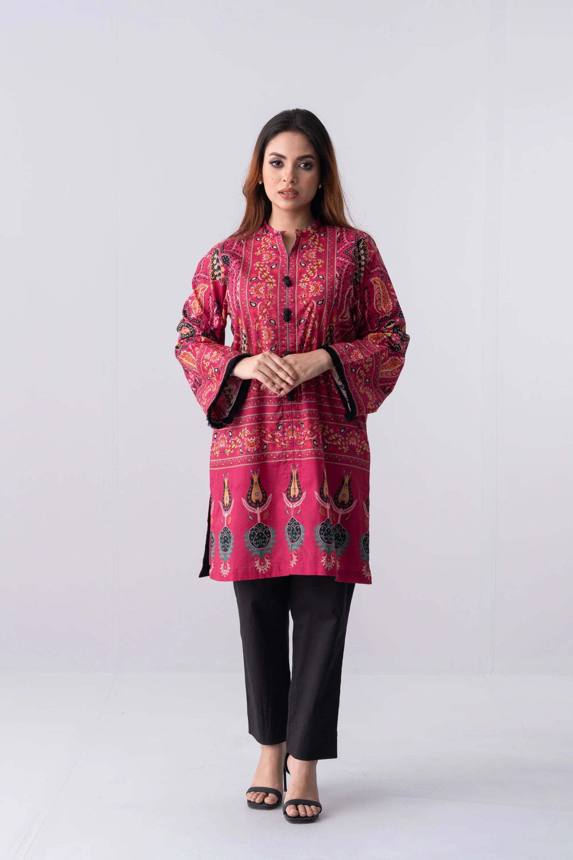Elevate your elegance with our stunning ready-to-wear 1 Piece Lawn Kameez, adorned with front slit, fringe lace and beaded button detailing, this piece is perfect for special occasions or adding a touch of luxury to your everyday wardrobe.