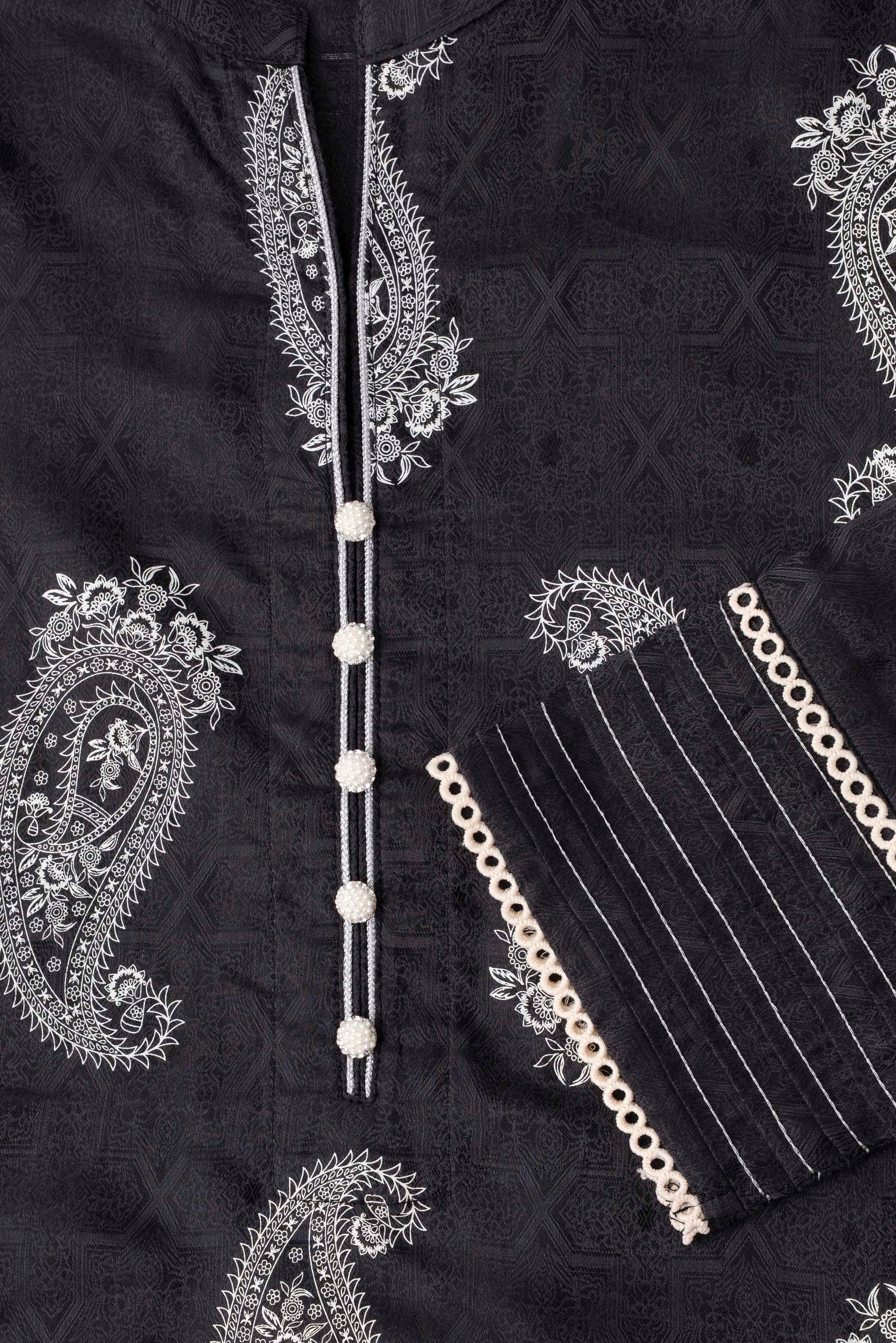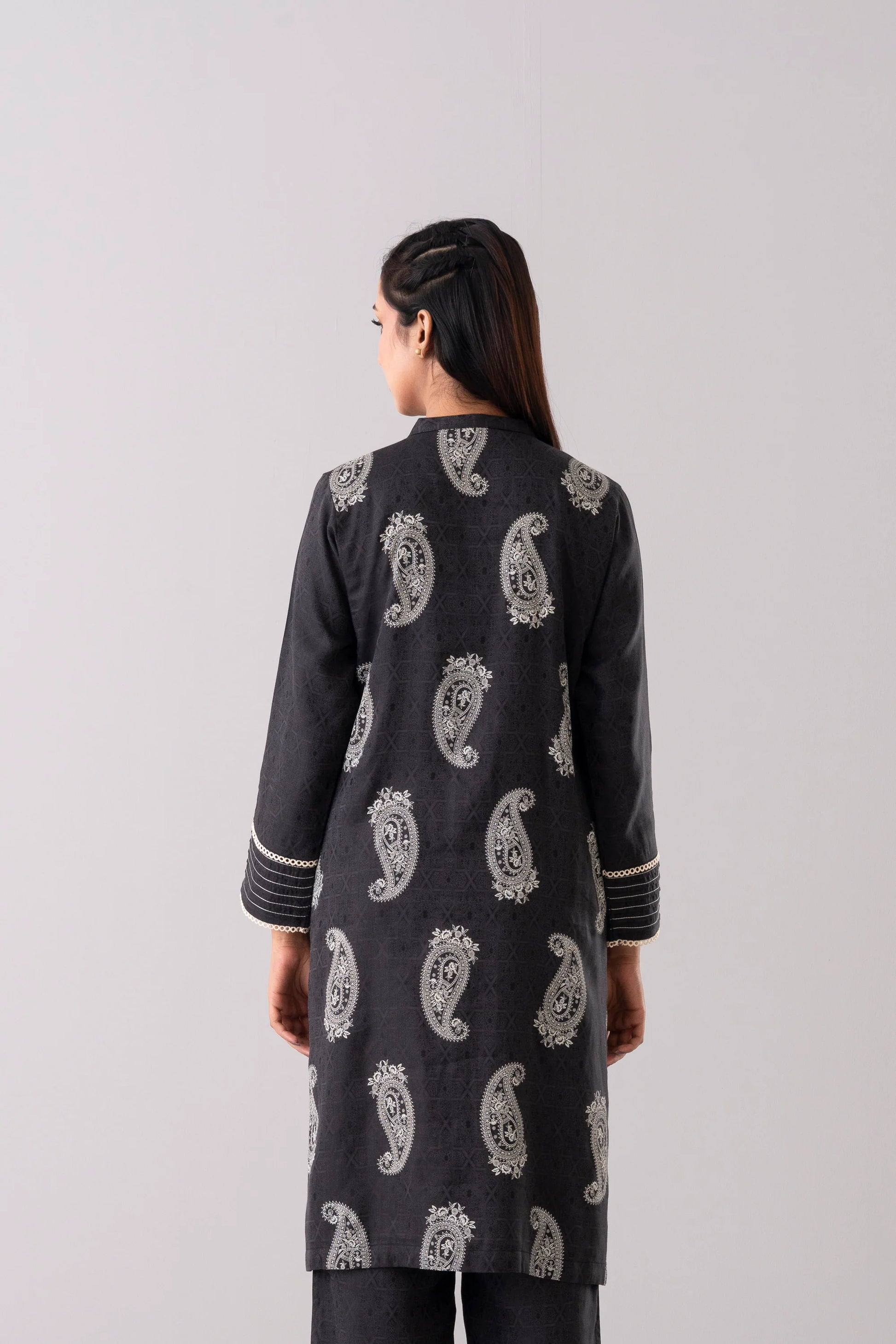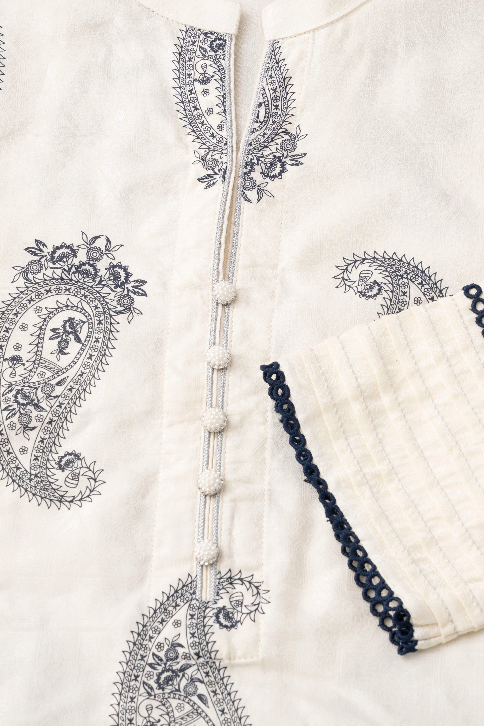 - Full sleeve embellished with lurex pintuck & decorative lace detailing