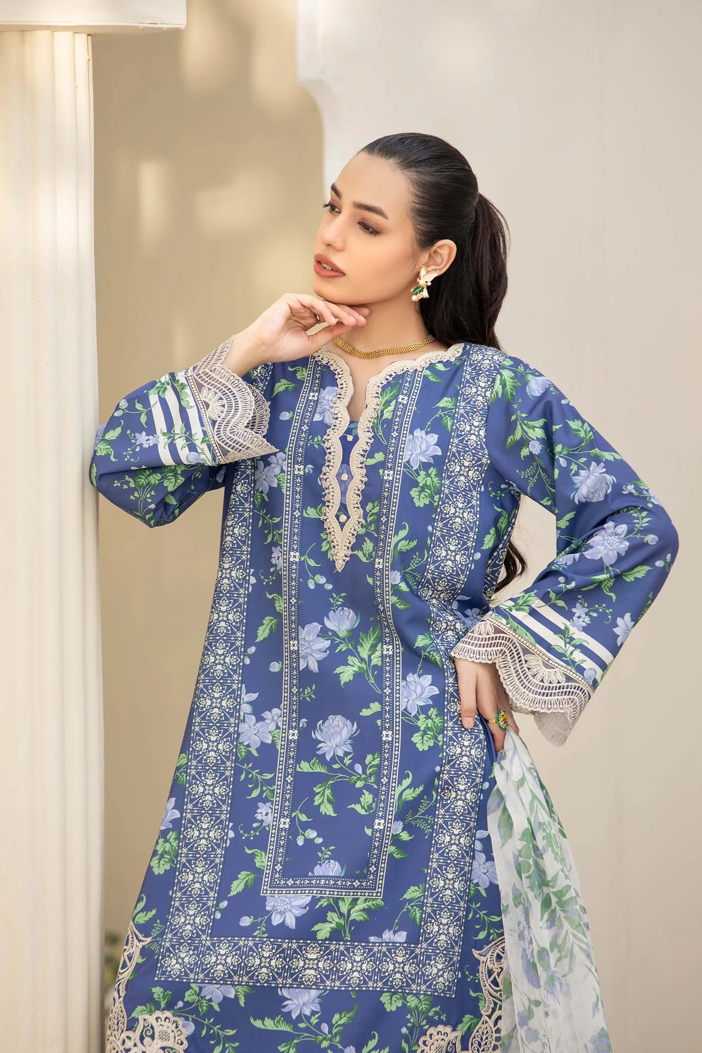 - Ready To Wear Viscous Slub EMB Shirt 1PC