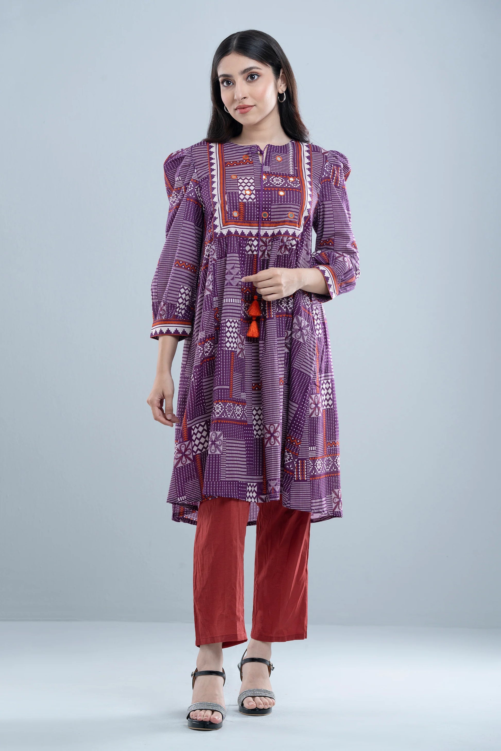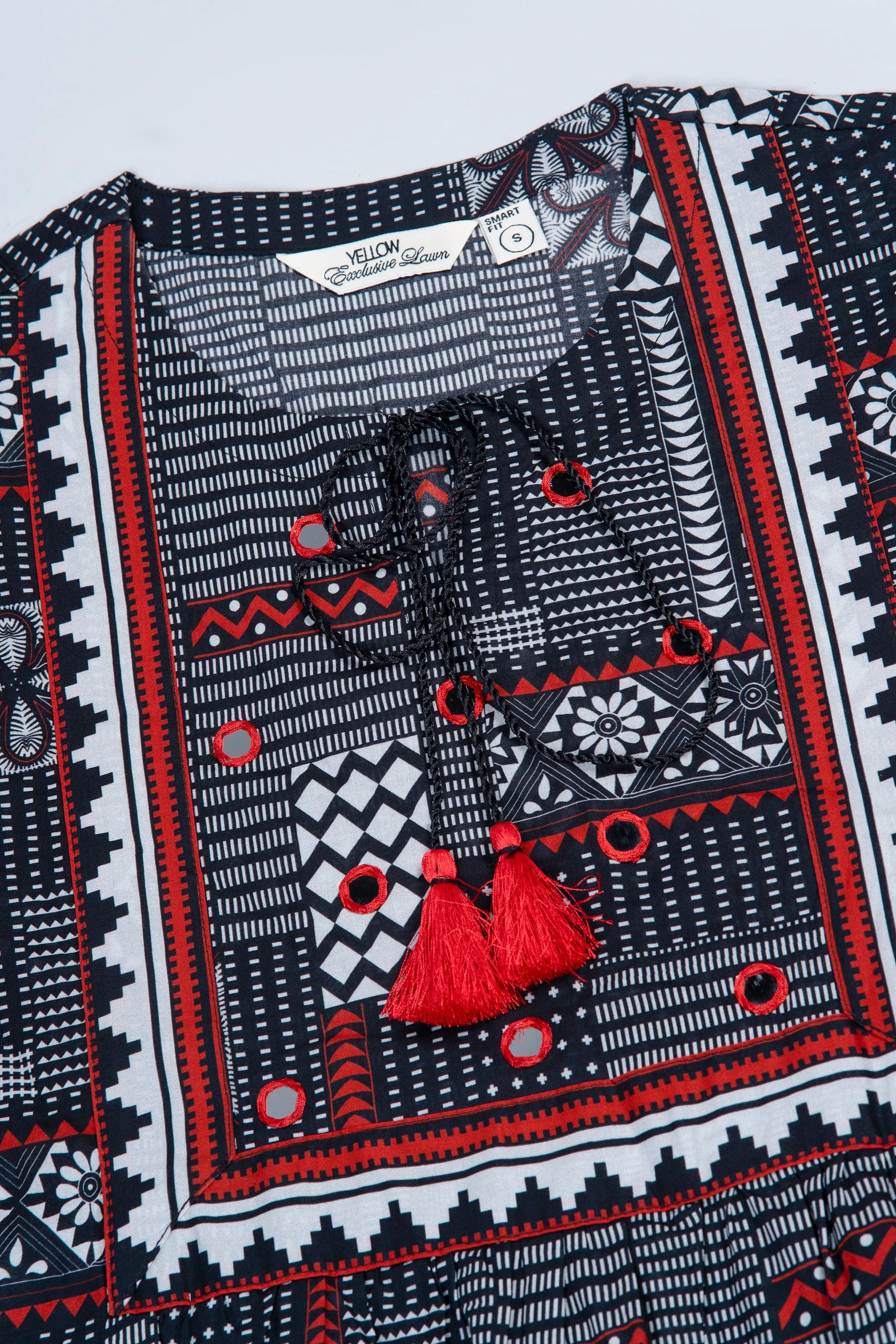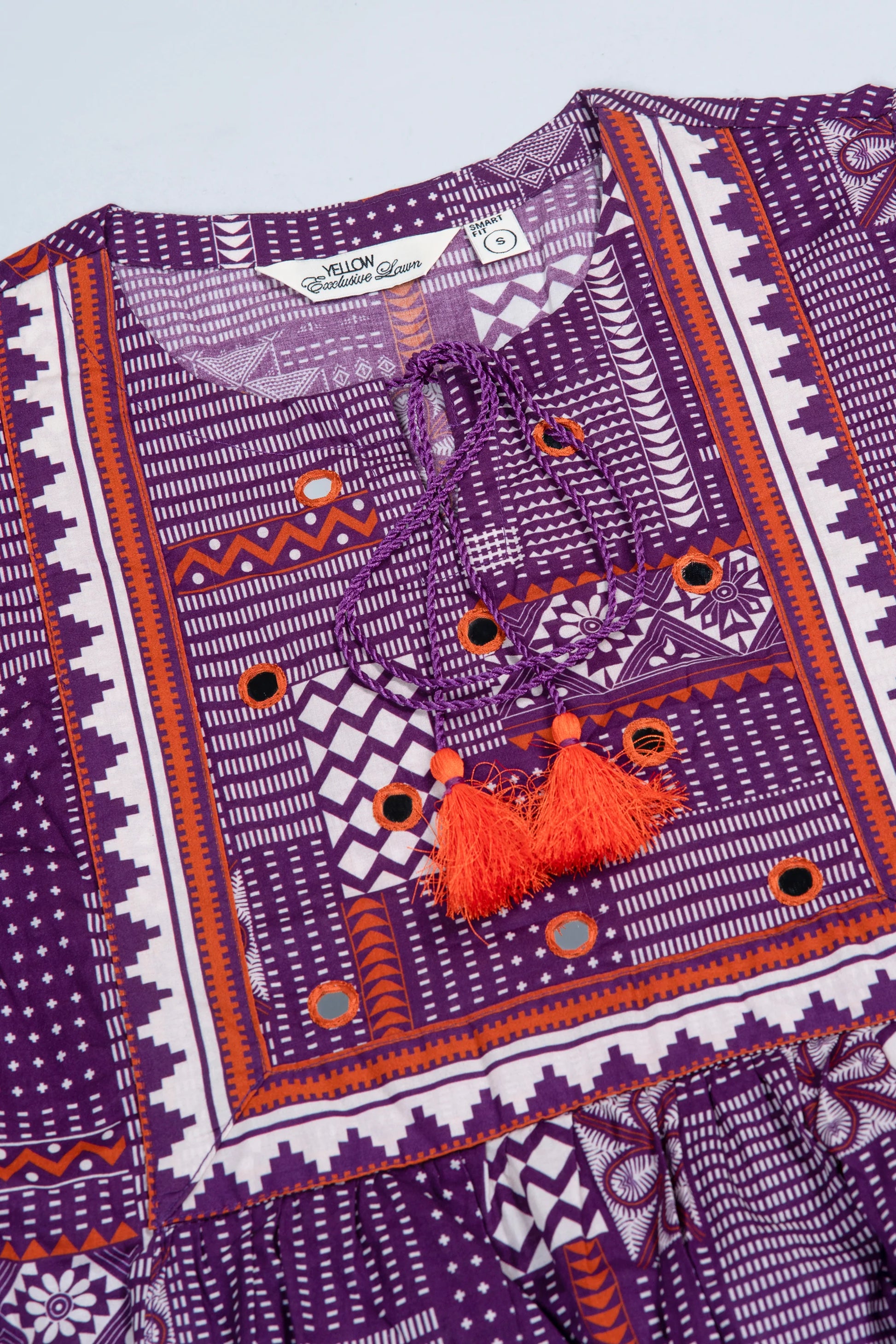 Elevate your style effortlessly with our stunning ready-to-wear 1-piece Lawn Kurti. Crafted from luxurious lawn fabric, it features decorative contrast tassels and intricate mirror work detailing. Combining comfort with chic sophistication, this piece is perfect for embracing understated elegance on any occasion.