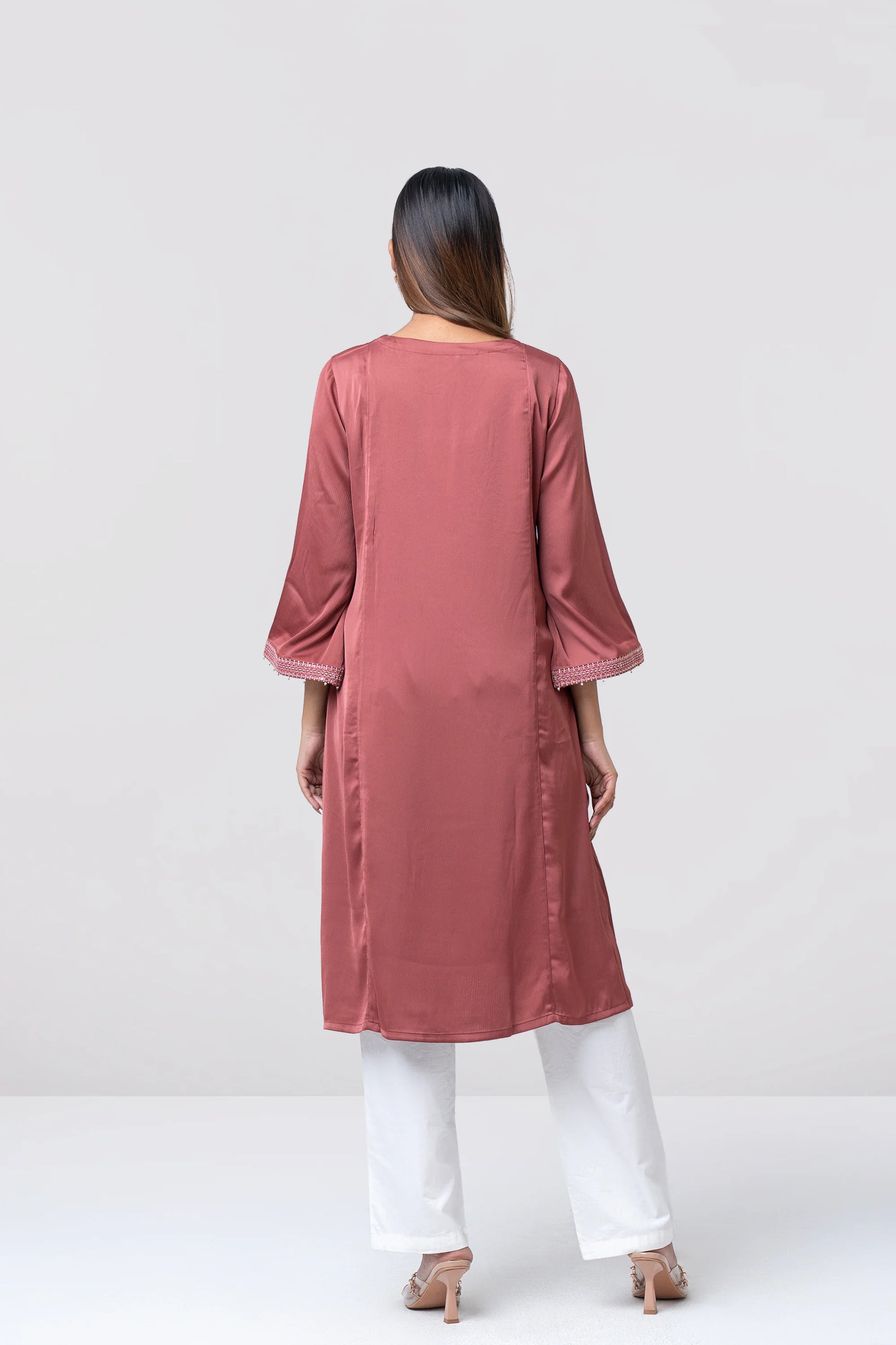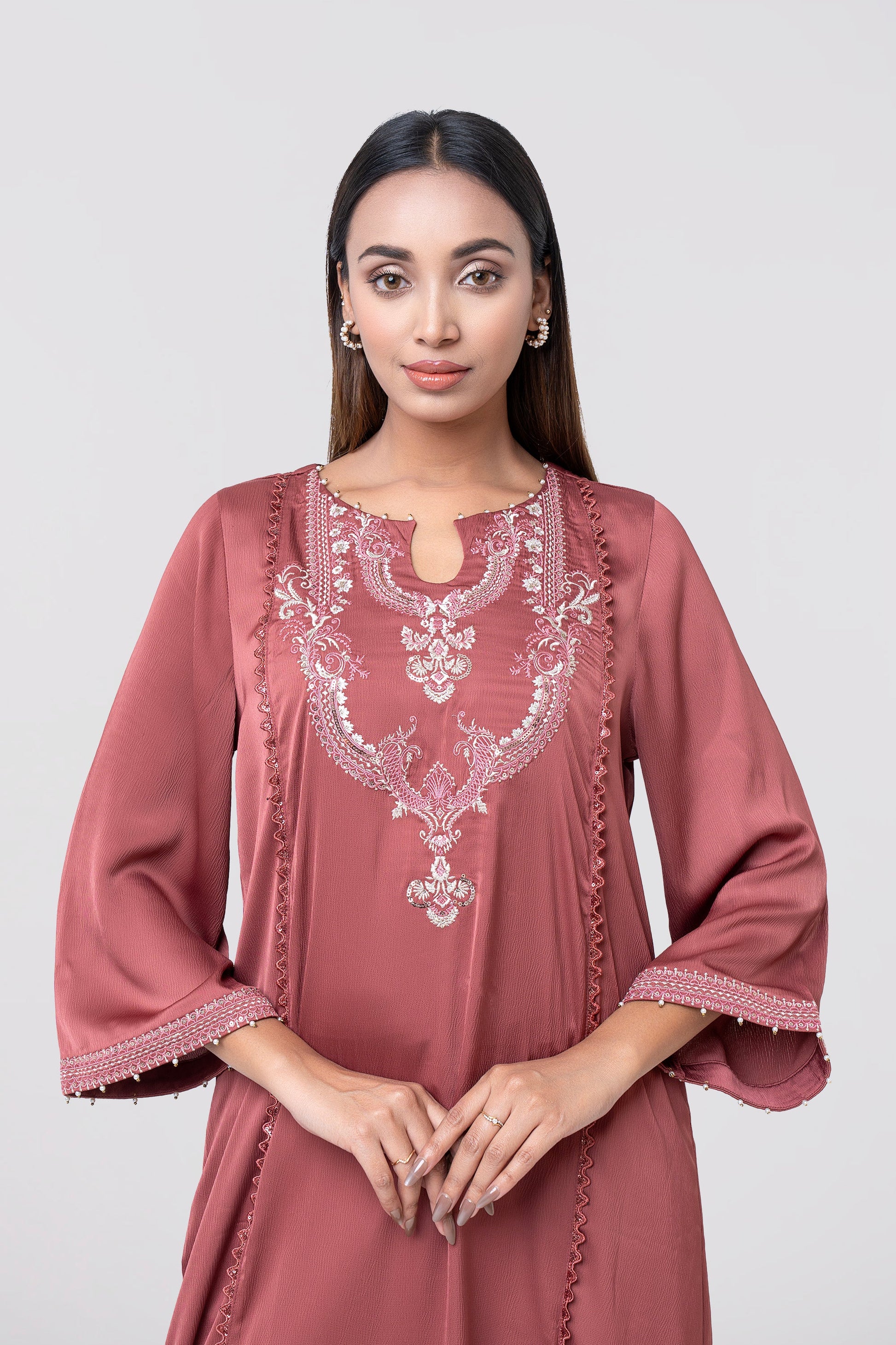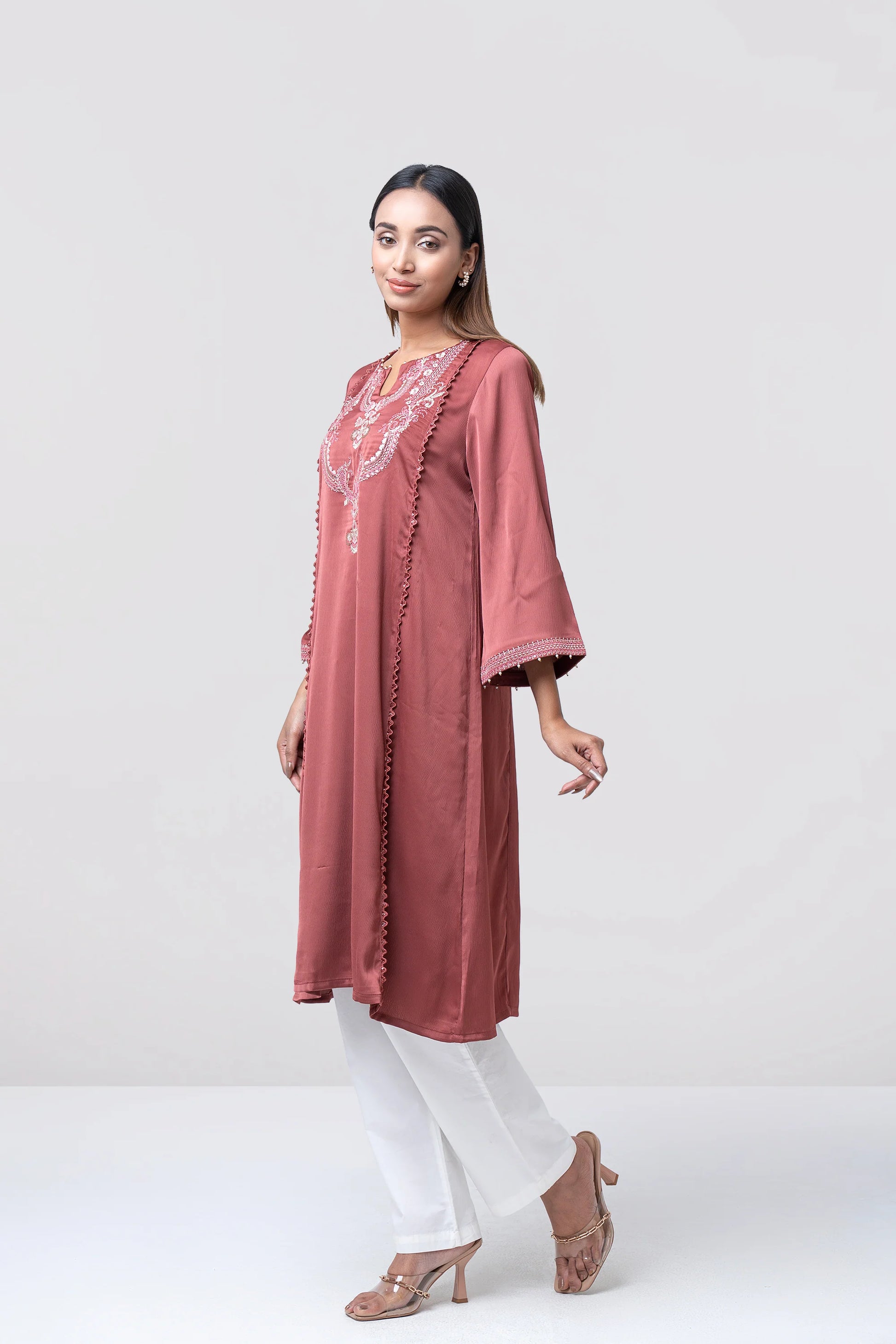 A smart-fit one-piece straight long dress/formal kurta-style dress. Its easy to wear Formal events, office wear, or evening gatherings.