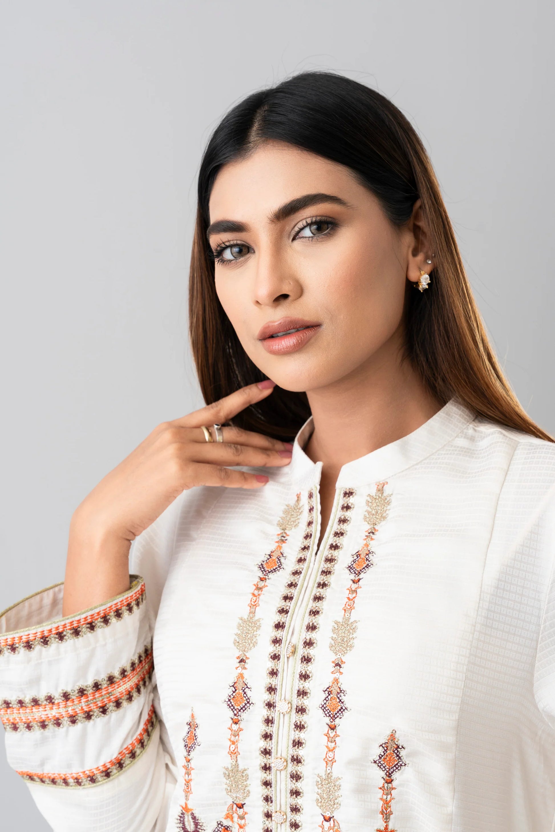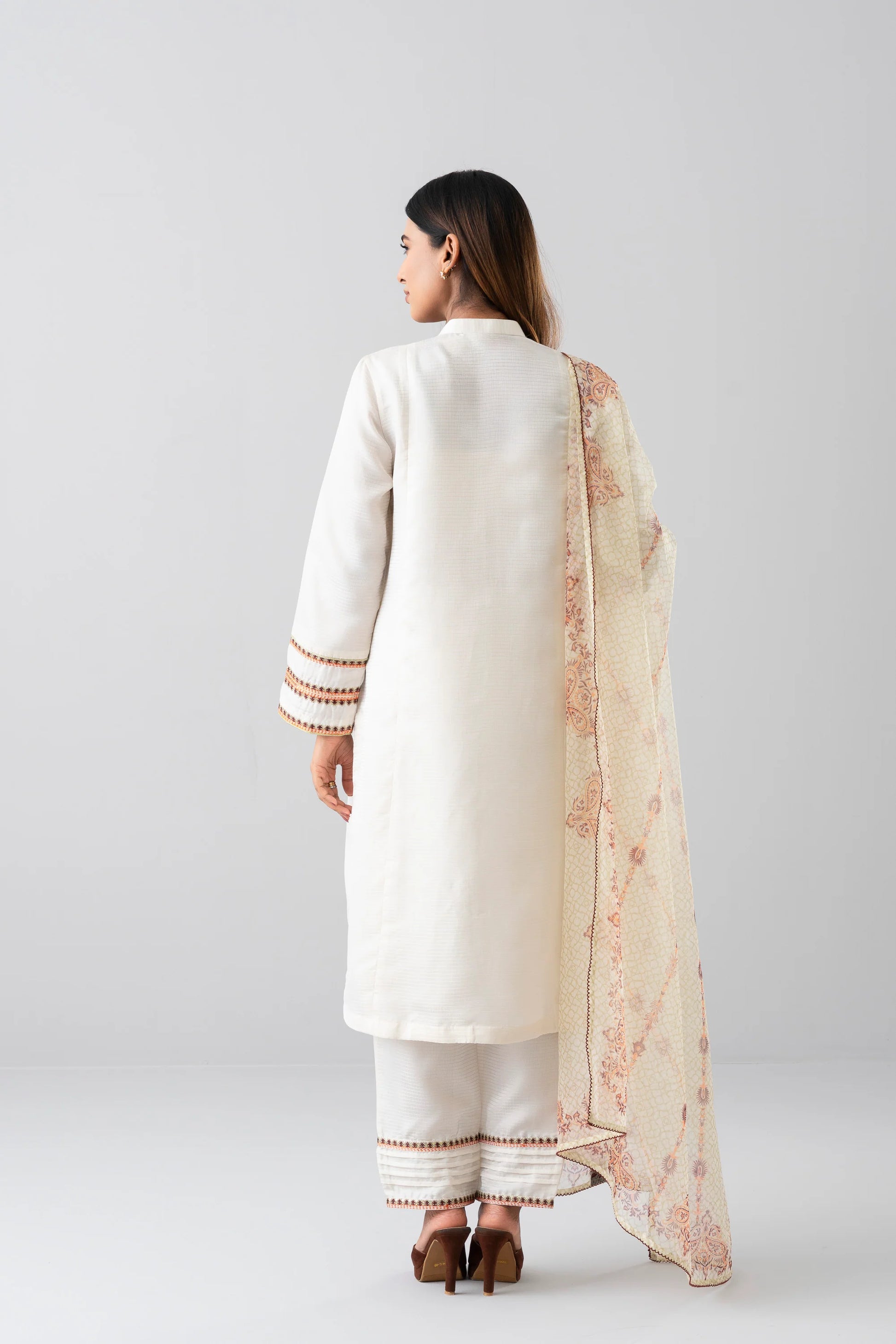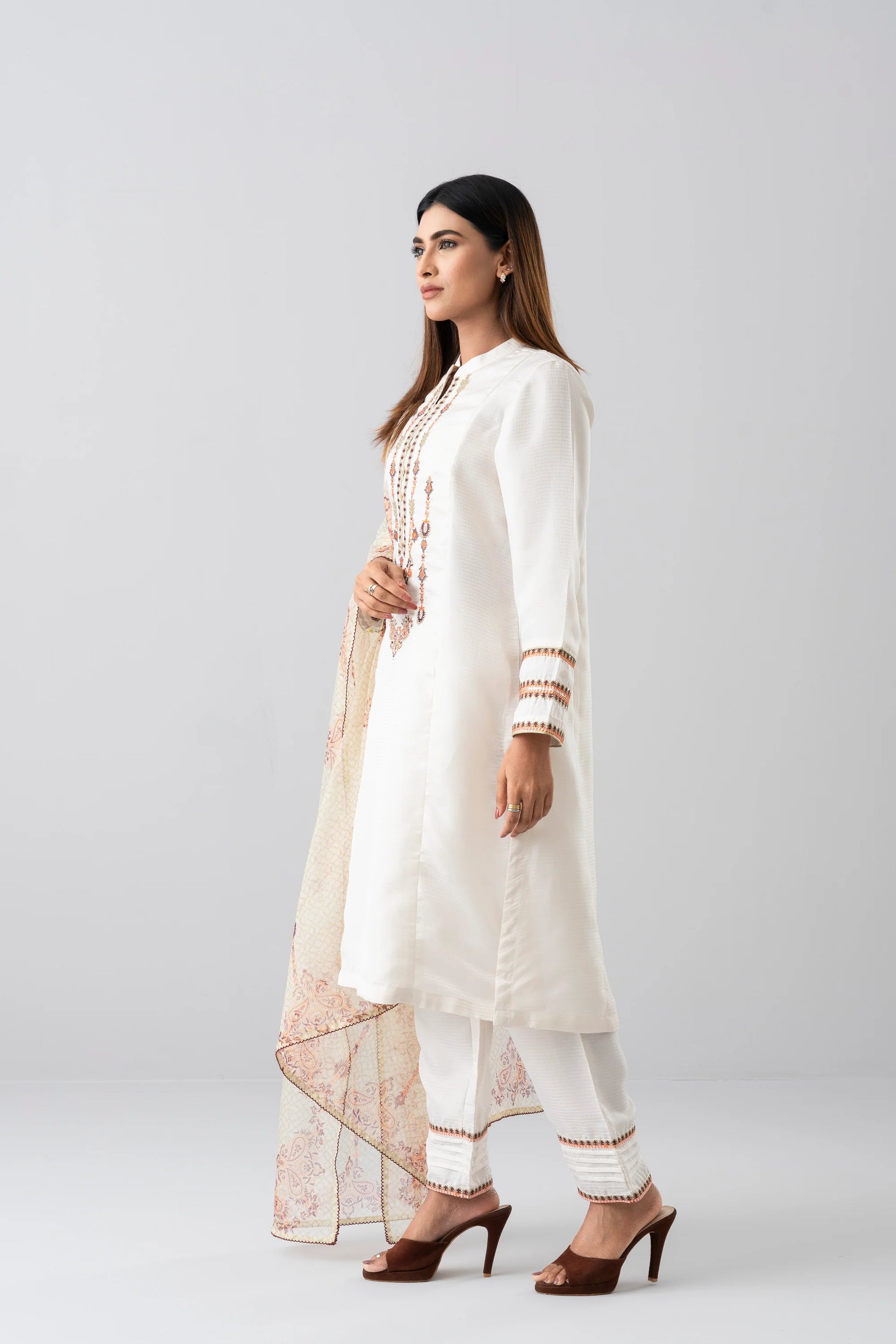 Smart Fit Embroidered Three-Piece Formal Ethnic Set with Organza Dupatta
