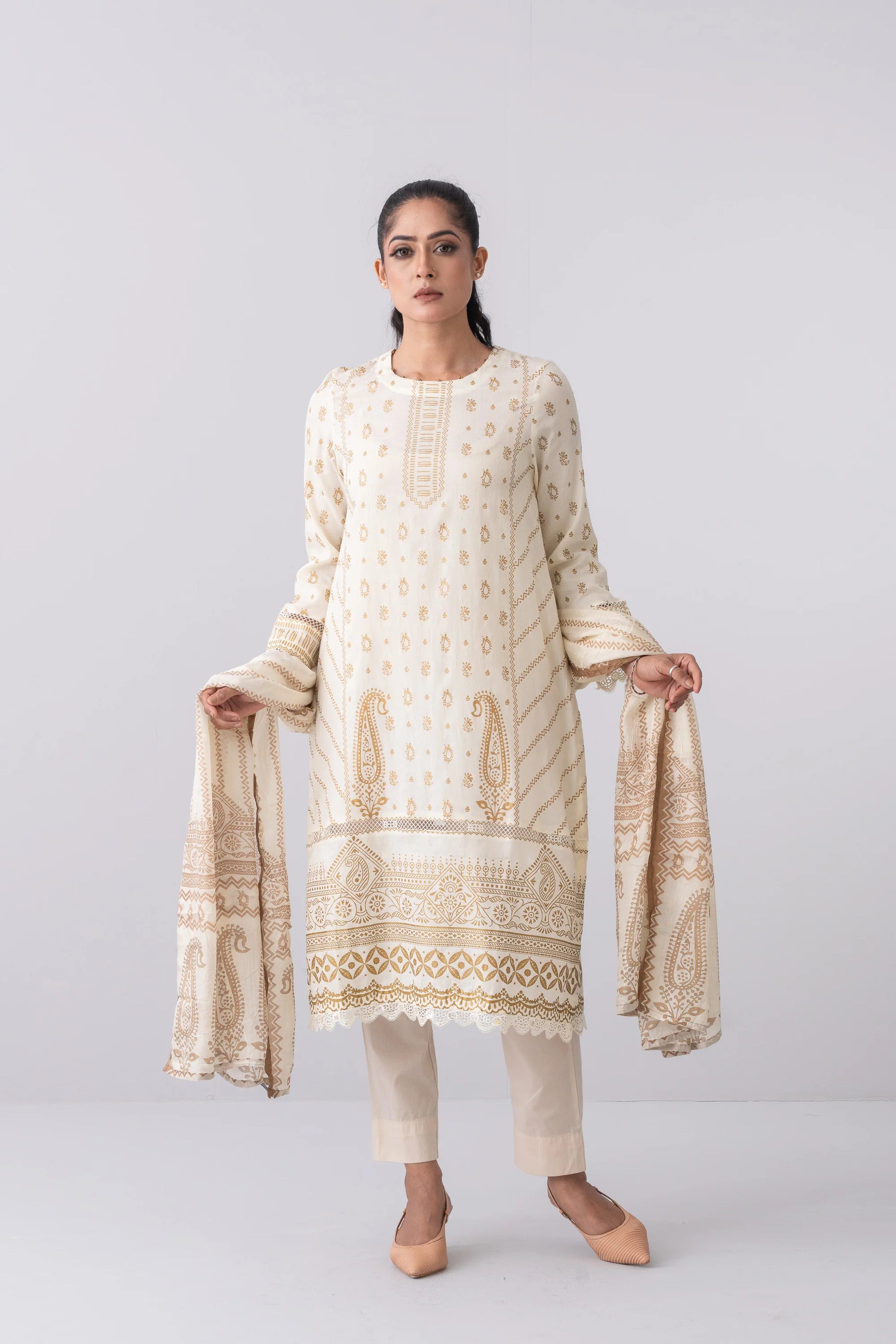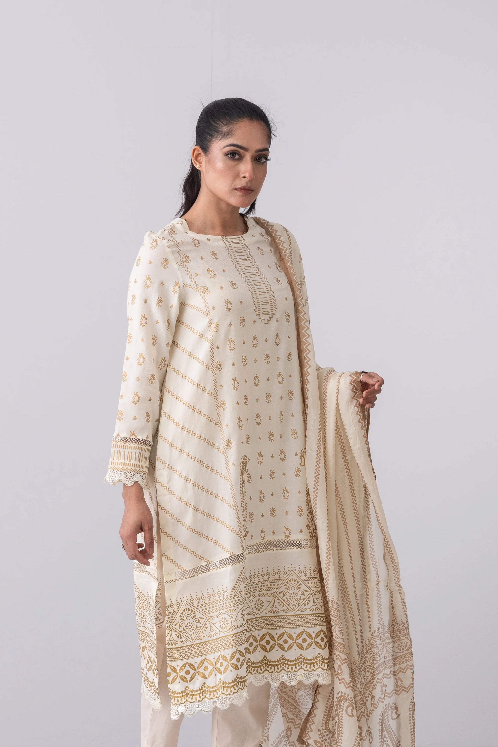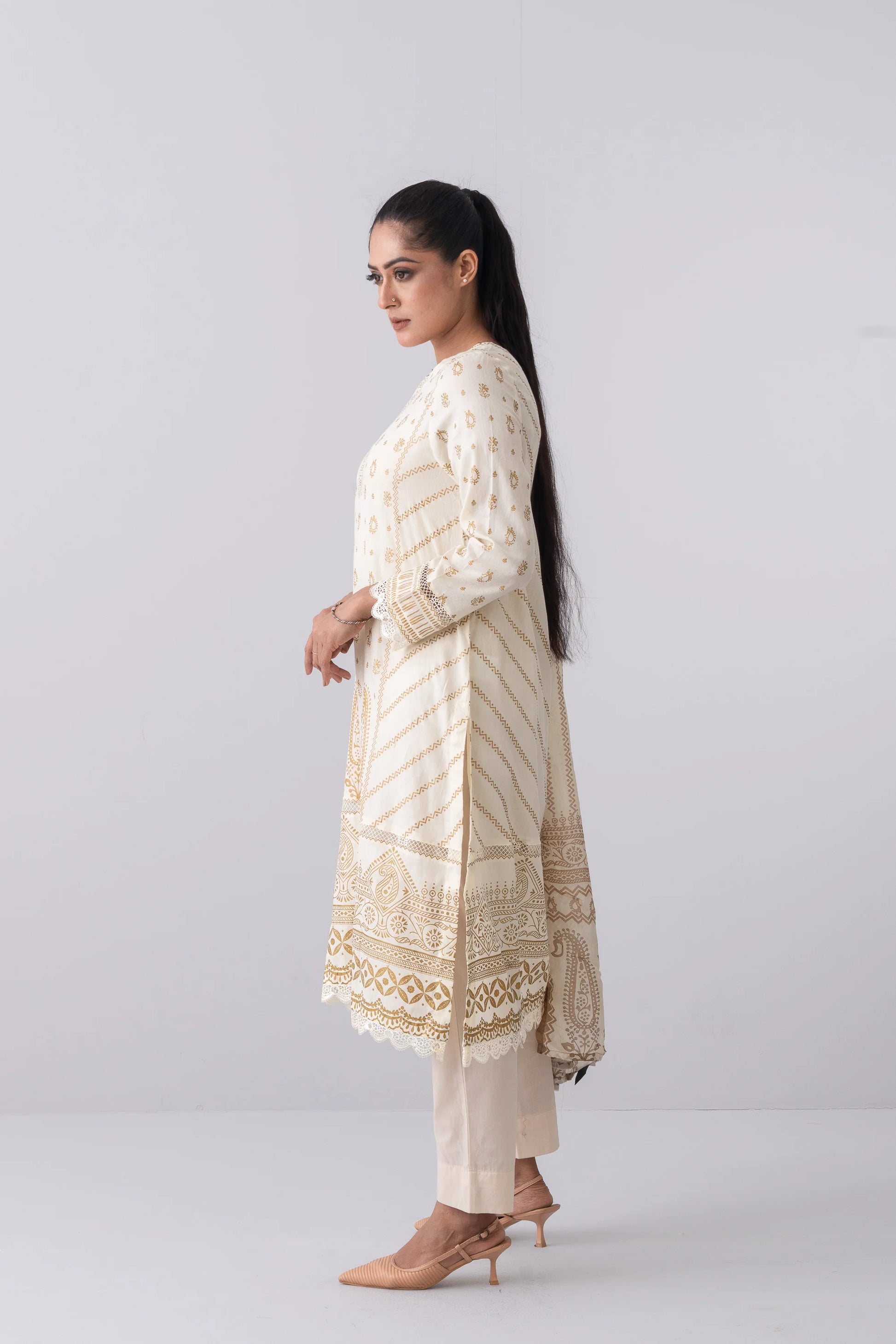 Metallic Printed Two Piece Lawn Salwar Kameez Suit