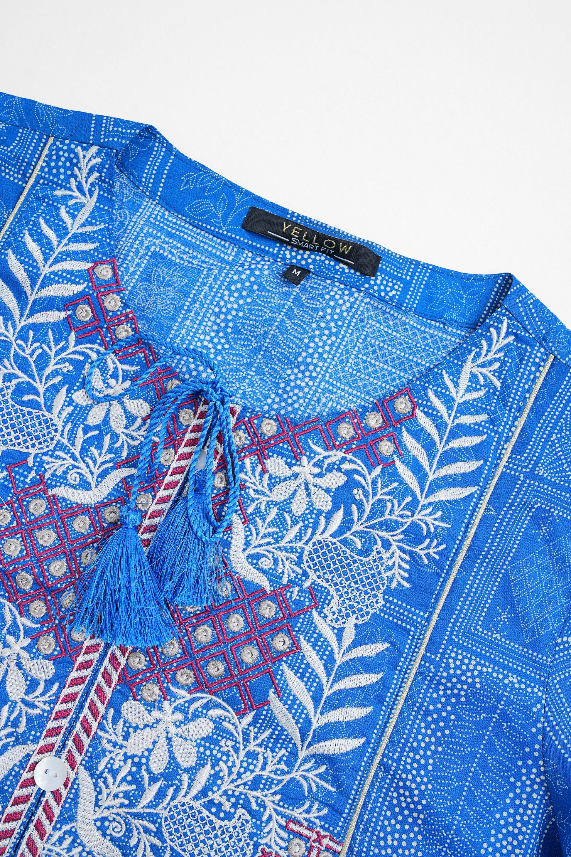 - Front mid edges embroidery floral motifs